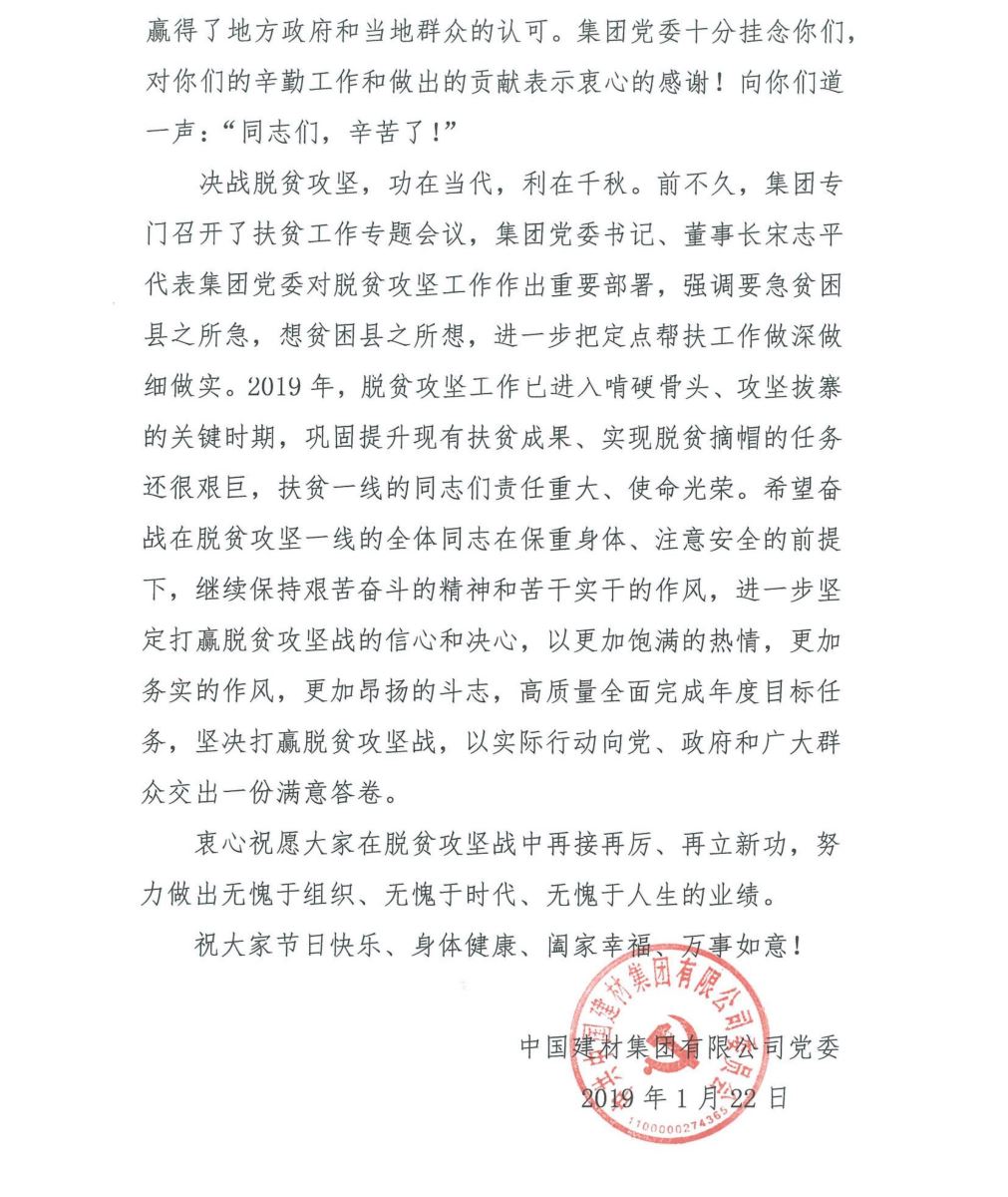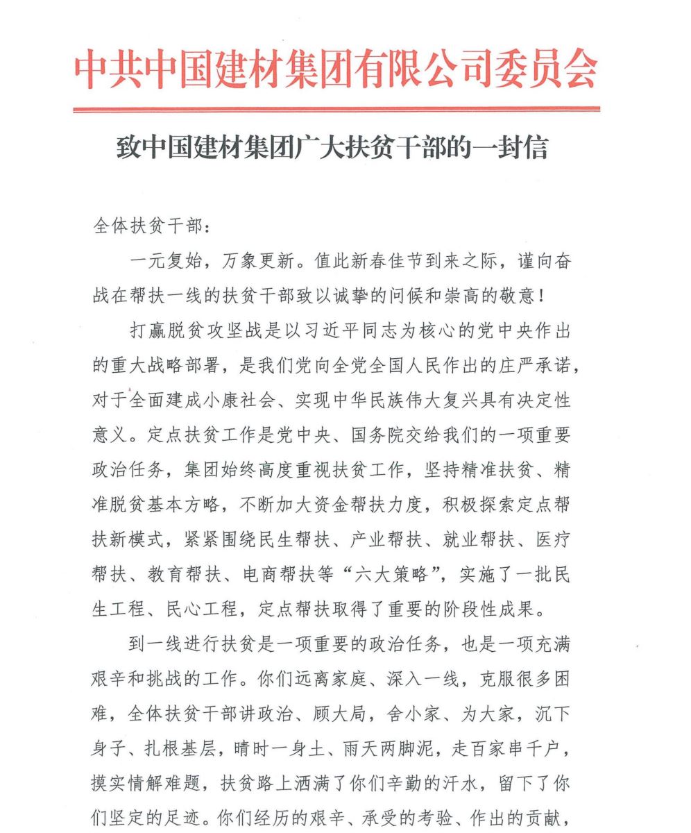 致中国建材集团广大扶贫干部的一封信