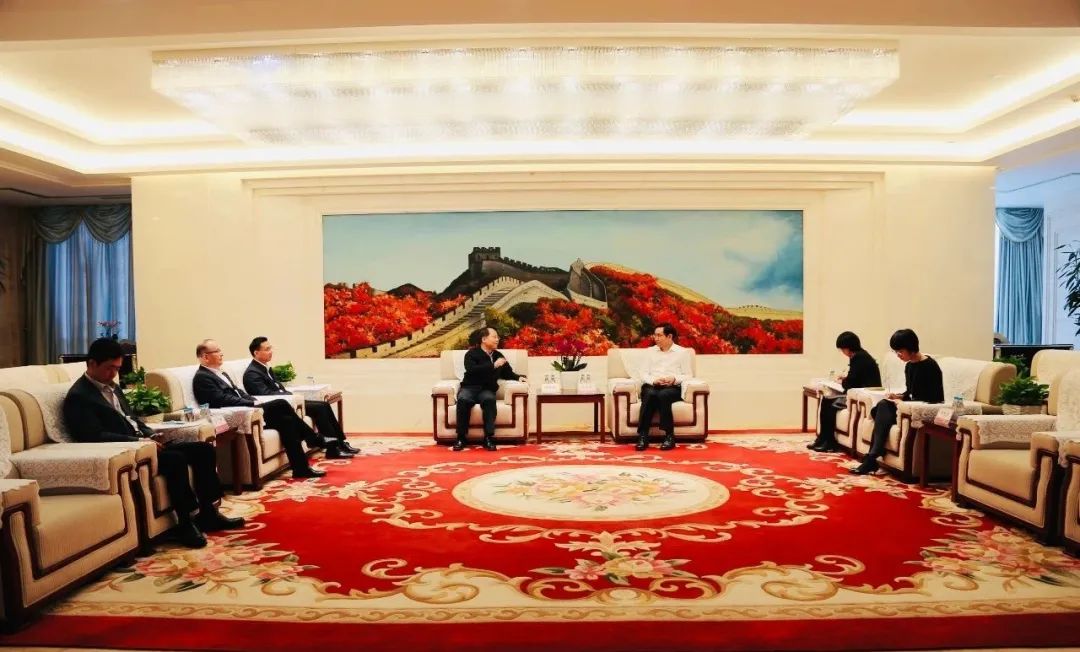 10月14日,中国建材集团党委书记 青青草影视,董事长周育先在集团总部会见了台州市委书记李跃旗一行,集团董事会秘书兼总经理助理光照宇,台州市委常委,市委秘书长周凌翔出席会见座谈。