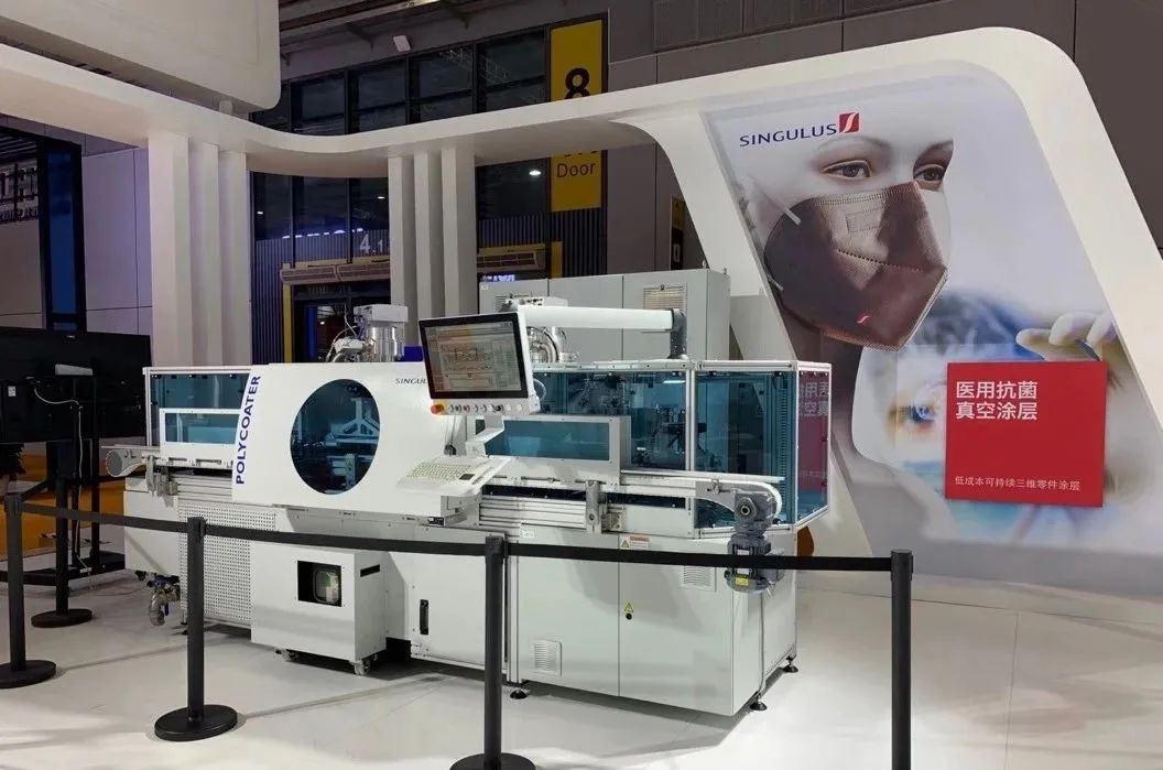 SINGULUS展位和POLYCOATER三维零件在线溅射设备(左)