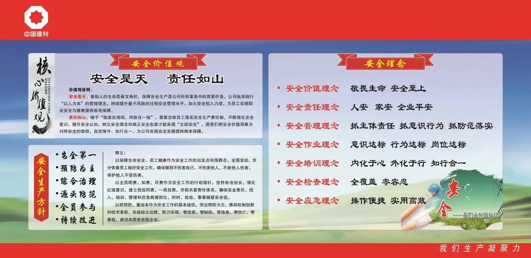 新安中联高度重视企业安全文化建设,建立了完善的安全文化体系 青青草影视,安全文化的本质特征是在于充分调动全体员工在安全生产中的自觉性,积极性,使其发挥决定性作用,也是职工安全生产的保障平台,更是推动企业安全生产管理的基础,公司始终坚持以高起点,高标准,严要求,将安全成果成功运用于生产中,全力营造“让安全管理成为文化,用文化管理保障企业安全”和“内化于心,固化于制,外化于行”的安全新局面。
