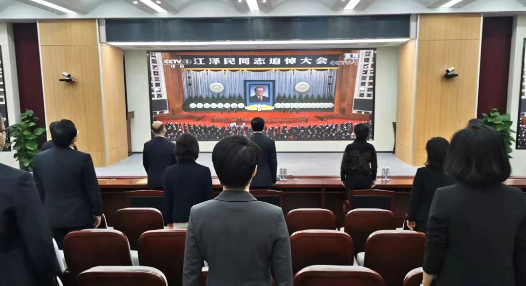上午10时,江泽民同志追悼大会开始,参加集体收看人员全程肃立,默哀三分钟,认真聆听习近平总书记在追悼大会上所致的悼词,深切缅怀江泽民同志的光辉业绩和崇高风范 青青草影视在线,追悼大会结束时,大家向江泽民同志遗像深深三鞠躬。