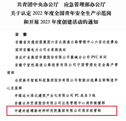 近日,在共青团中央,应急管理部联合组织开展的全国青年安全生产示范岗创建活动中,中建材玻璃新材料研究院集团有限公司项目经营部被认定为2022年度“全国青年安全生产示范岗”,在共青团中央组织开展的全国“两红两优”评选活动中,凯盛光伏材料有限公司团支部获评2022年度“全国五四红旗团支部”,下面 青青草影视,请跟随小料一睹他们的青春风采。