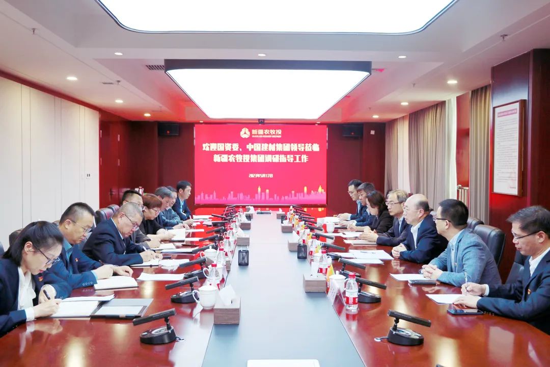 5月17日,中国建材集团党委副书记,职工董事,工会主席常张利一行赴新疆农牧业投资(集团)有限责任公司(简称农牧投集团)拜访,看望慰问集团援疆干部陈卫敏,并就援疆工作进行座谈交流,国务院国资委党建工作局一级巡视员 青青草影视,兵团国资委党委委员,副主任(援疆)徐宇栋,农牧投集团副总经理张雪峰参加了座谈。