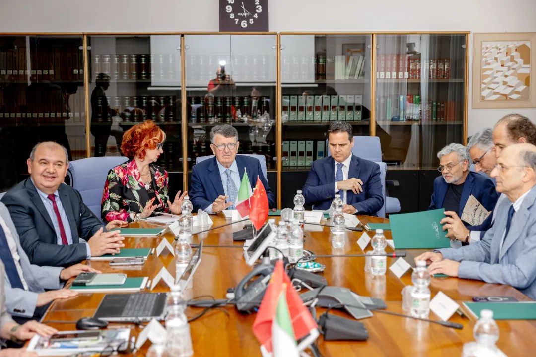 Financo集团和Colacem集团创始人之一、Colacem集团董事长Carlo Colaiacovo,Financo集团董事长Francesca Colaiacovo女士, Colacem集团总裁 Ubaldo Colaiacovo,Colacem集团总经理Fabrizio Pedetta,中材建设常务副总经理马爱国等一同出席会议。