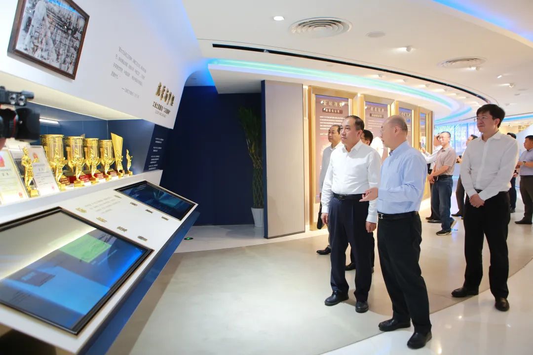 座谈会前 青青草影视免费观看,常张利陪同董兆伟一行参观了集团展厅。
