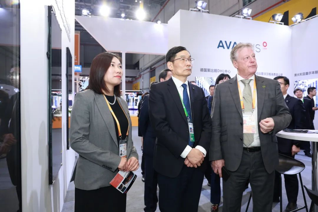 11月5日 青青草影视高清,周育先受邀出席进博会开幕式并参观集团展台,集团党委常委,副总经理王于猛,魏如山,中国工程院院士,集团首席科学家彭寿,集团首席营运官,凯盛集团党委书记,董事长尹自波等参加相关活动,集团海外企业德国阿旺西斯CEO Helmut Frankenberger ,德国哈兹马克CEO Marcus Heinrich,意大利奥利维托总经理Sergio向领导和观众现场介绍了企业发展及参展展品相关情况。