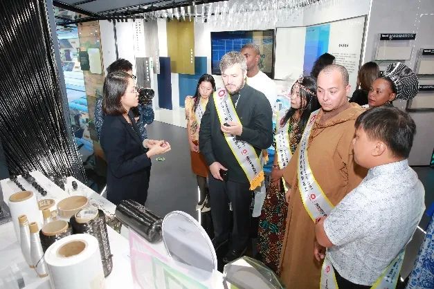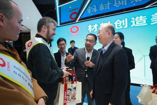 会见前,优秀外籍员工们参观了集团业务展厅,通过参观交流,他们进一步了解了集团的整体发展情况,体验了独具特色的青青草影视在线 青青草视频,切身感受到“材料创造美好世界”的企业使命担当,对材料工业之美和青青草影视在线魅力赞叹不已。