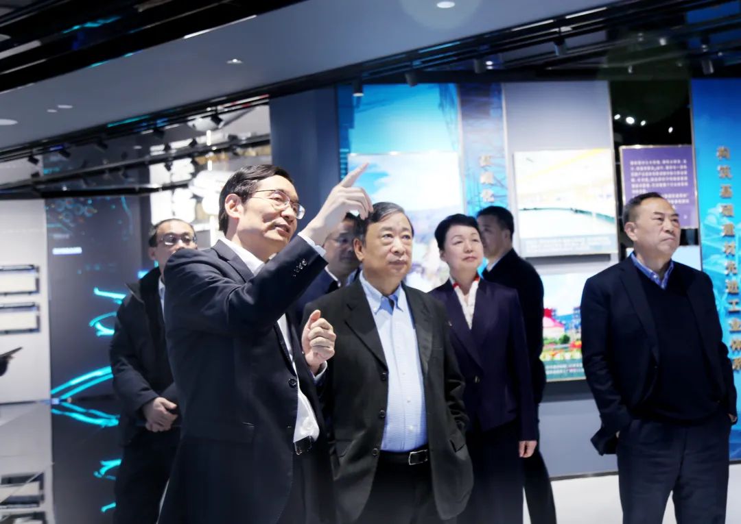 会谈前 青青草影视免费观看,周育先陪同李耀强一行参观了集团展厅。