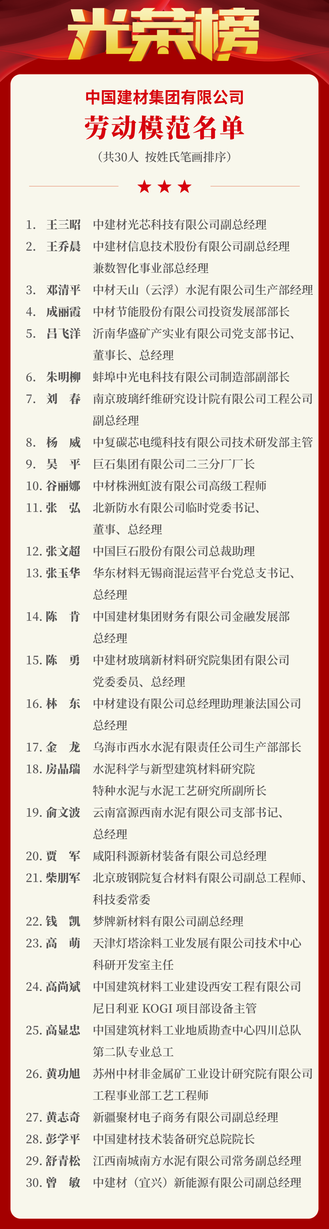 4月28日,中国建材集团在京召开2025年劳动模范和先进集体表彰暨典型事迹宣讲会,集团党委书记,董事长周育先出席会议并讲话,集团党委常委 青青草影视,纪委书记刘磊宣读表彰通报和决定,中国机械冶金建材工会副主席张杰出席会议。