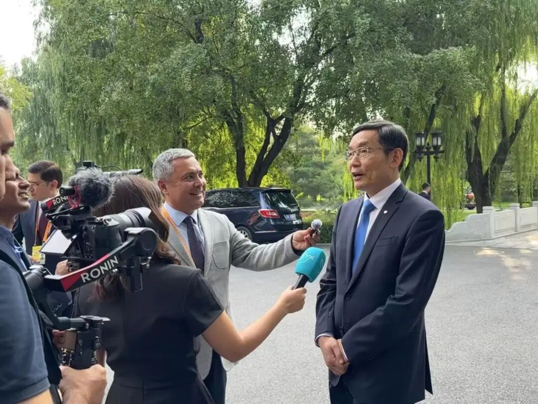 会谈前后 青青草影视免费观看,中国建材集团董事长周育先应邀接受了乌兹卫星新闻和报道电视台等主流媒体的采访。