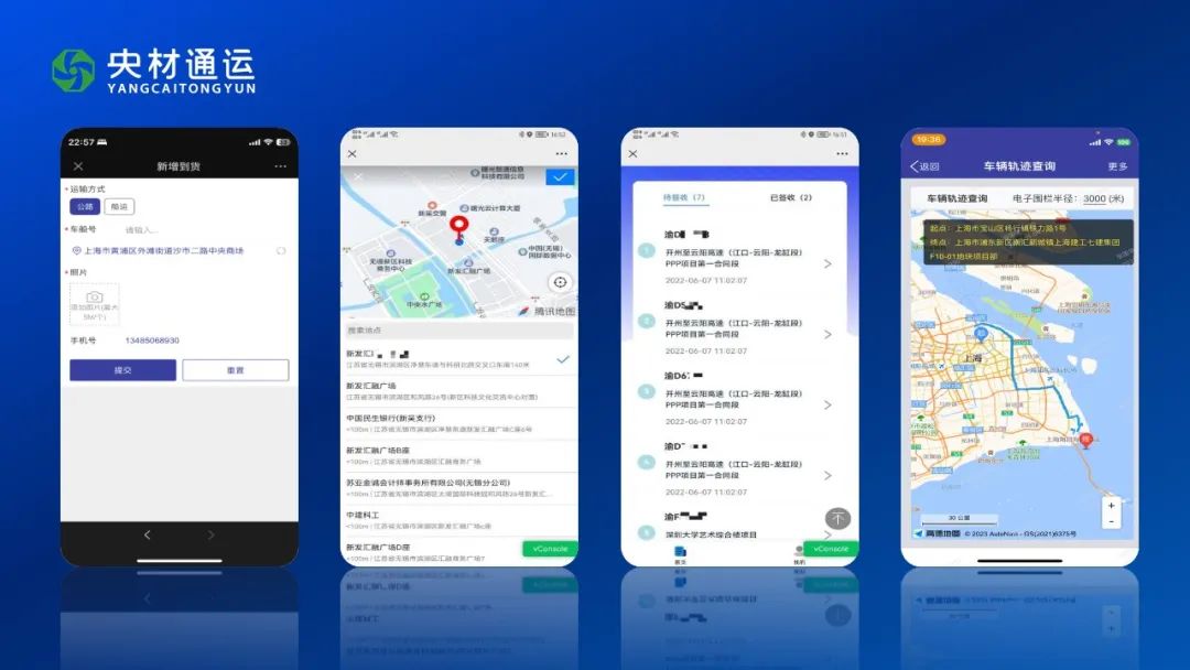 着力打造物流中台“央材通运”,打通物流平台间的数据传输通道,推动供应链物流管理转型升级,先后与“我找车”平台,数道棱镜系统,船讯网等物流平台及客户终端系统进行对接,让每个发运单都有“迹”可查,让物流数据直观,形象,具体 青青草影视在线,公司自主研发“到货啦”移动收货小程序,打通终端配送“最后一公里”,目前已实现148个材料项目现场签收4025车。