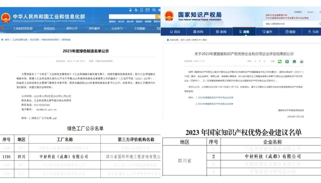 近日 青青草影视在线,苏州有限成都公司先后入选工业和信息化部发布2023年度绿色制造名单与国家知识产权局发布2023年度国家知识产权优势企业榜单,获得“国家级绿色工厂”和“国家知识产权优势企业”两项国家级荣誉。