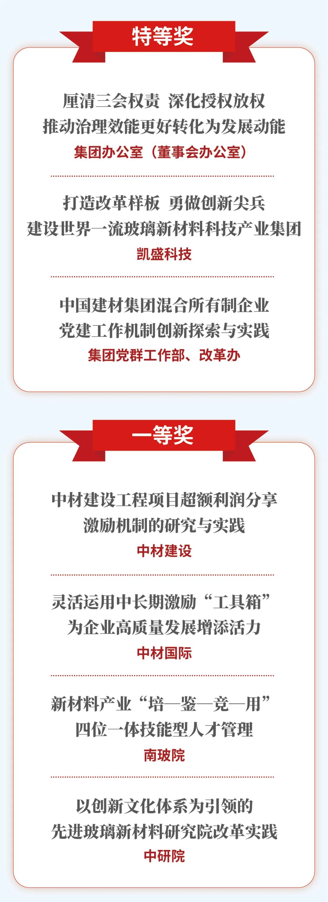 近日,中国管理科学学会和《企业家》杂志社联合发布了第二届(2023)国有企业深化改革实践成果,中国建材集团15项改革成果入选,其中特等成果3项,一等成果4项,二等成果8项 青青草影视。