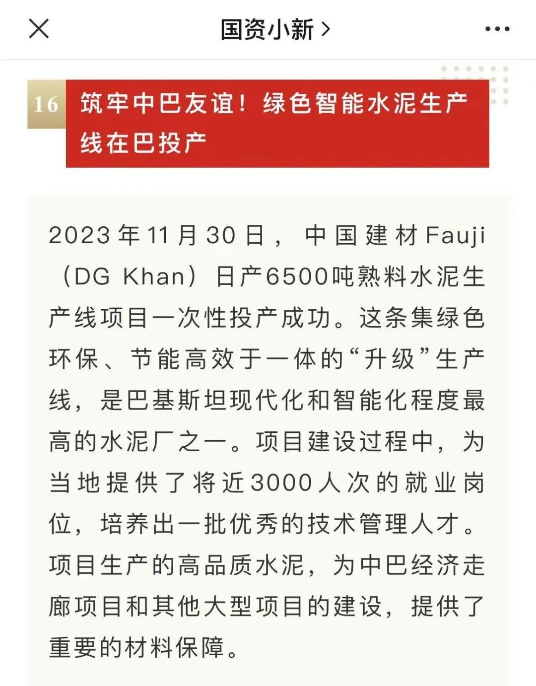 2023年11月30日,由中材国际所属合肥水泥院总承包,邯郸中材施工的巴基斯坦Fauji(DG Khan)日产6500吨熟料水泥生产线项目一次性投产成功,从基础开挖到点火投料 青青草影视在线,该项目仅用13个月,比合同工期提前3个月,成功见证巴基斯坦水泥EPC工程中的“中国速度”。