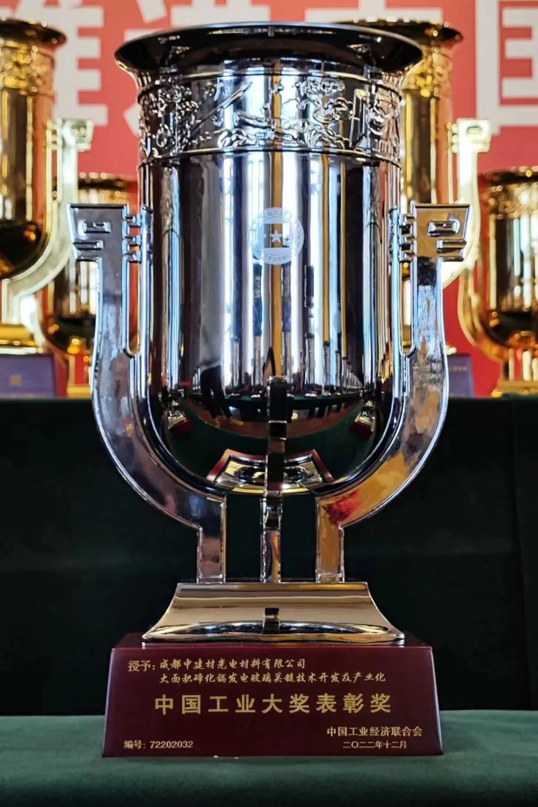 “大面积碲化镉发电玻璃关键技术开发”项目,荣获第七届“中国工业大奖”表彰奖,成为玻璃领域唯一获奖项目。