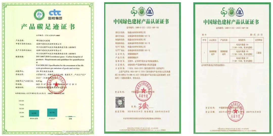 凯盛光伏取得最高级别(三星级)“中国绿色建材产品认证证书”。