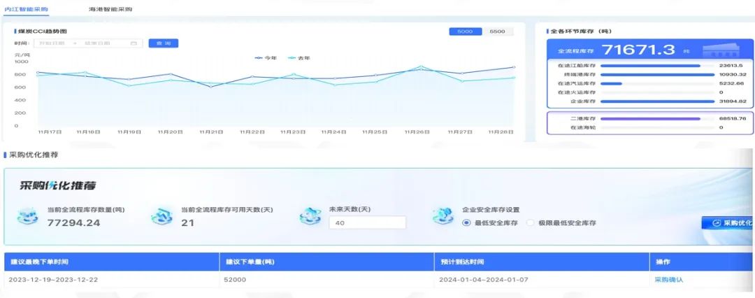 基于CCI指数,全流程库存需求,等数据,开发智能采购模型,实现精准采购下单,基于开停窑,海轮,江轮,赣江过驳,汽运,火运等需求和在途数据,煤炭供应管理业务规则,开发智能派送模型,实现按需配送,智能采购方面通过智能采购推荐 青青草影视在线,人机结合寻求最佳采购时机。