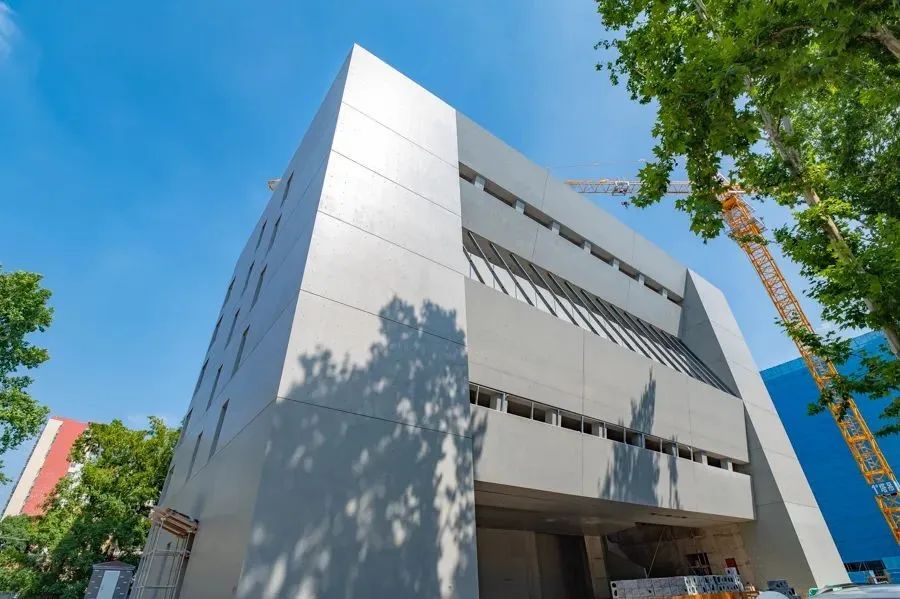 进入正在建设中的南师附中晓庄校区内,首先夺得游览者眼球的是一栋造型独特的图书馆 青青草影视免费观看,采用了超长超大截面饰面清水混凝土的图书馆,满满工业风,墙上一排排螺栓孔与模板缝相呼应,营造出了独具特色的工业美感。