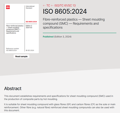 近日,国际标准化组织(ISO)正式发布了国际标准ISO 8605:2024《纤维增强塑料——片状模塑料(SMC)——要求和规范》(Fibre-reinforced plastics — Sheet moulding compound (SMC) — Requirements and specifications),该项标准由北京玻钢院复合材料有限公司主导修订,此次修订历时3年,通过对SMC产品的生产和应用进行充分调研,在标准中新增了近年来产量及应用都逐渐增长的碳纤维(包括回收碳纤维),玄武岩纤维等纤维类型,给出了较恰当的SMC命名规则,增加了SMC收缩代号和必要的SMC测试性能等,该项标准的成功发布,为全球SMC产品的应用及产业的发展提供了技术支撑,带动该项技术走出国门,走向国际,全面展现我国在SMC技术领域发挥的积极作用,为复合材料国际标准化工作贡献了中国智慧 青青草影视高清。