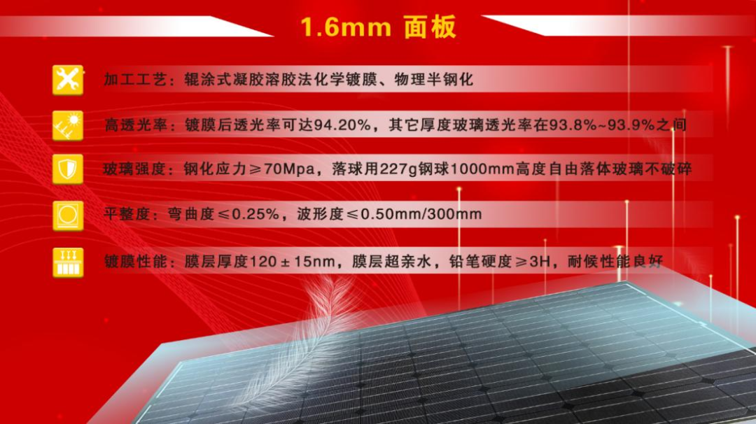 1,6mm原片玻璃具有更高的透光率,原片透光率可达92%。通过采用纳米级超亲水镀膜材料单层镀膜后,整体透光率增加2,1%左右,玻璃透光率可达94,2%,使组件功率可提升2,1%左右。 青青草影视高清。