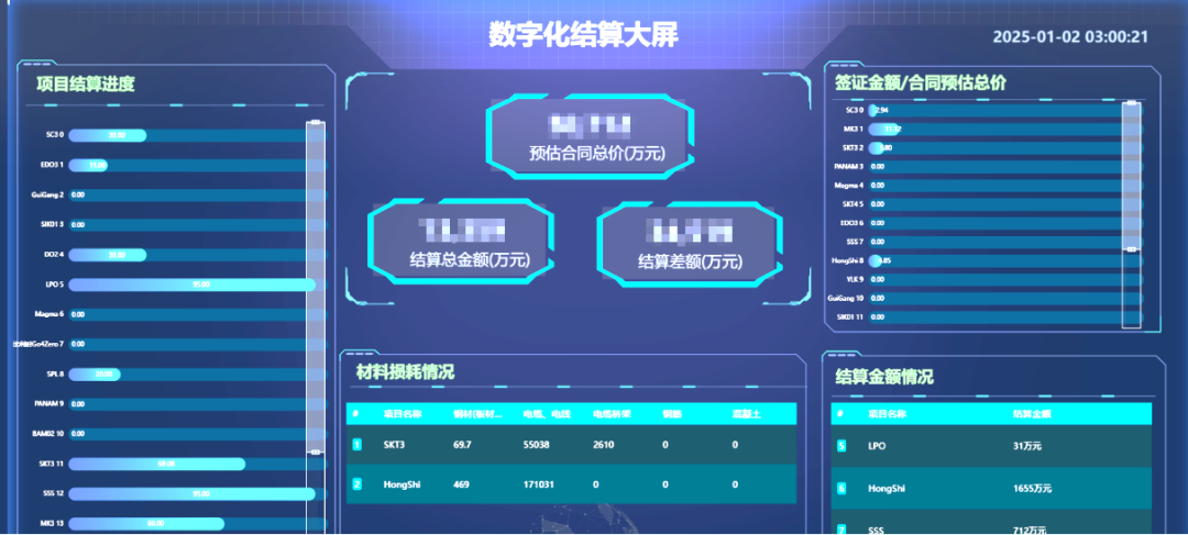数智建造平台汇集各业务系统的指标数据建立管理驾驶舱
