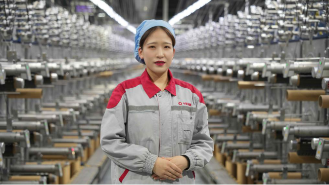 藏族员工贺顺花生长于青海互助,如今在碳丝分厂担任氧化炉工,她轻抚如发丝般闪亮的碳纤维 青青草影视高清,眼神专注:对她而言,守护产线,如同守护家乡的雪山一样神圣。