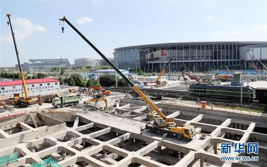 ▲位于上海国家会展中心8H场馆边的下沉式广场工地(7月13日摄)。