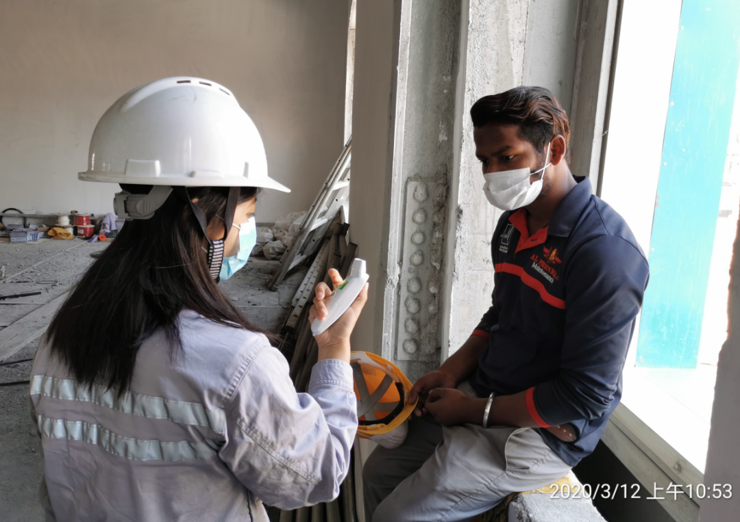 作为现场的翻译,除了常规翻译工作,与业主的联络沟通,现场人员签证的办理 青青草影视免费观看,与当地供货商联系沟通现场材料采购等日常工作之外,我还摇身一变,成为了项目上的一名“抗疫小卫士”,工厂里,办公室里,班车上,宿舍里总是可以看到我要么拿着体温枪,要么拿着消毒瓶,要么拿着口罩分发给大家的身影。