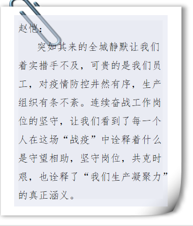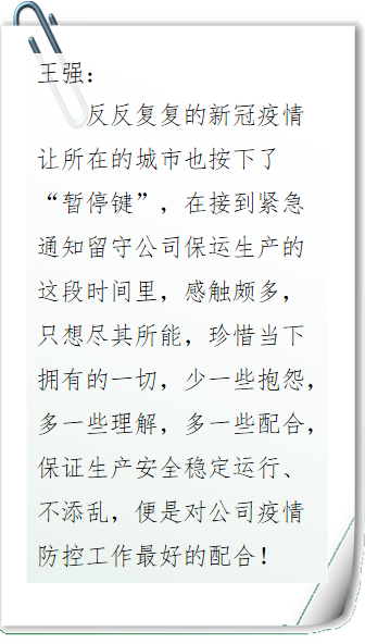 家是幸福的港湾,家是温暖的小窝,然而没有“大家”哪有“小家”,面对疫情,鲁南中联全体员工上下守望相助,共克时艰,此刻他们不再是孩子,母亲,父亲……,在疫情面前他们有一个共同的称号“最美逆行者” 青青草影视在线,他们毅然踏上了回公司的路,坚守工作岗位,确保封控期间的生产经营平稳运行,他们用实际行动诠释着:责任,担当,作为…….