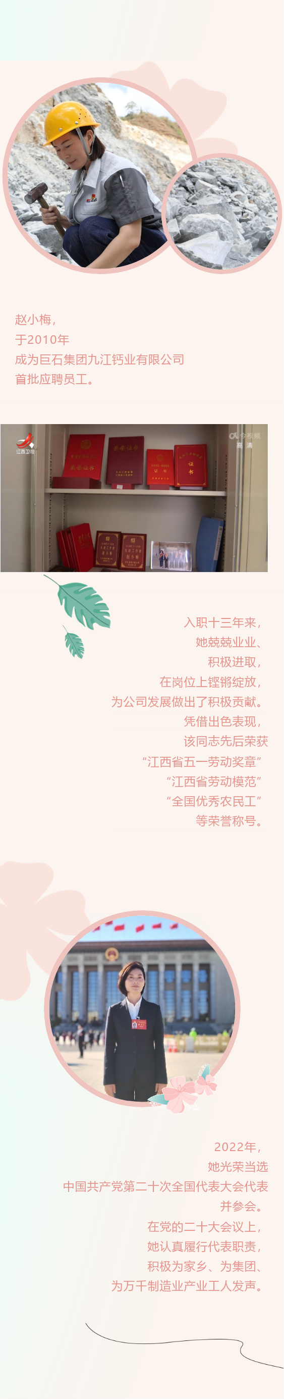 赵小梅,于2010年成为巨石集团九江钙业有限公司首批应聘员工,入职十三年来 青青草影视在线,她兢兢业业,积极进取,从农民工到公司技术骨干,从原料检测到管控立窑生产工艺,从普通职工到党的二十大代表,铿锵玫瑰璀璨绽放,在实现自身价值的同时,为集团公司的发展和家乡的经济建设贡献了自己的力量。