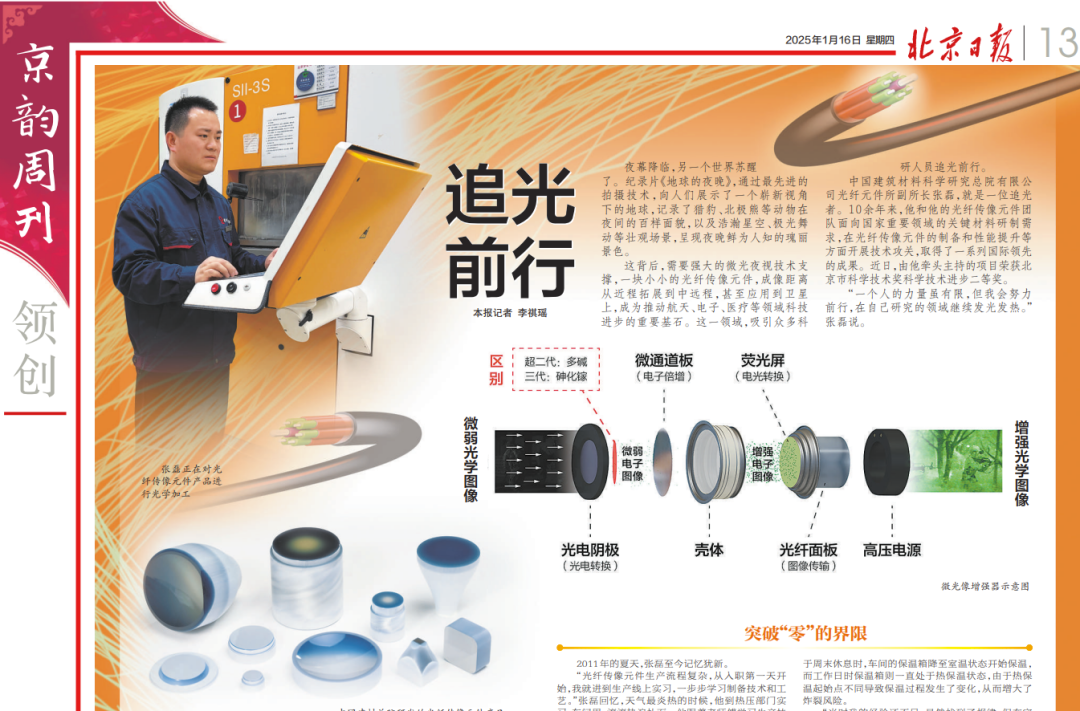中国建筑材料科学研究总院有限公司光纤元件所副所长张磊,就是一位追光者 青青草影视免费观看,10余年来,他和他的团队面向国家重要领域的关键材料研制需求,在光纤传像元件的制备和性能提升等方面开展技术攻关,取得了一系列国际领先的新成果,由他牵头主持的项目荣获2023年度北京市科学技术奖科学技术进步二等奖。