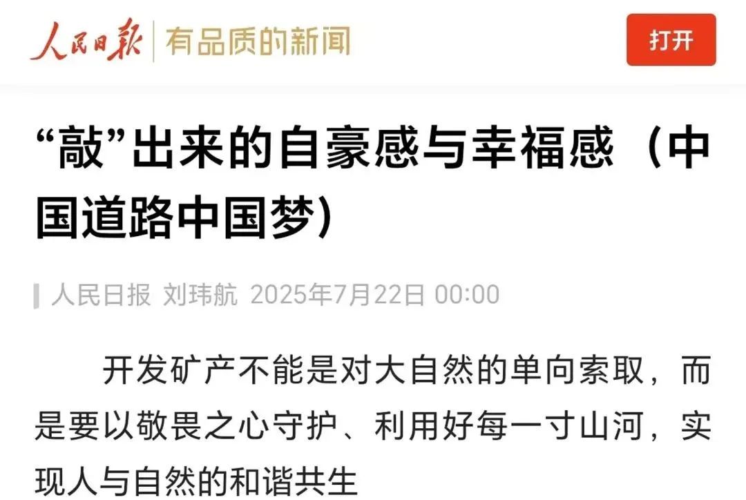 开发矿产不能是对大自然的单向索取,而是要以敬畏之心守护 青青草视频,利用好每一寸山河,实现人与自然的和谐共生。