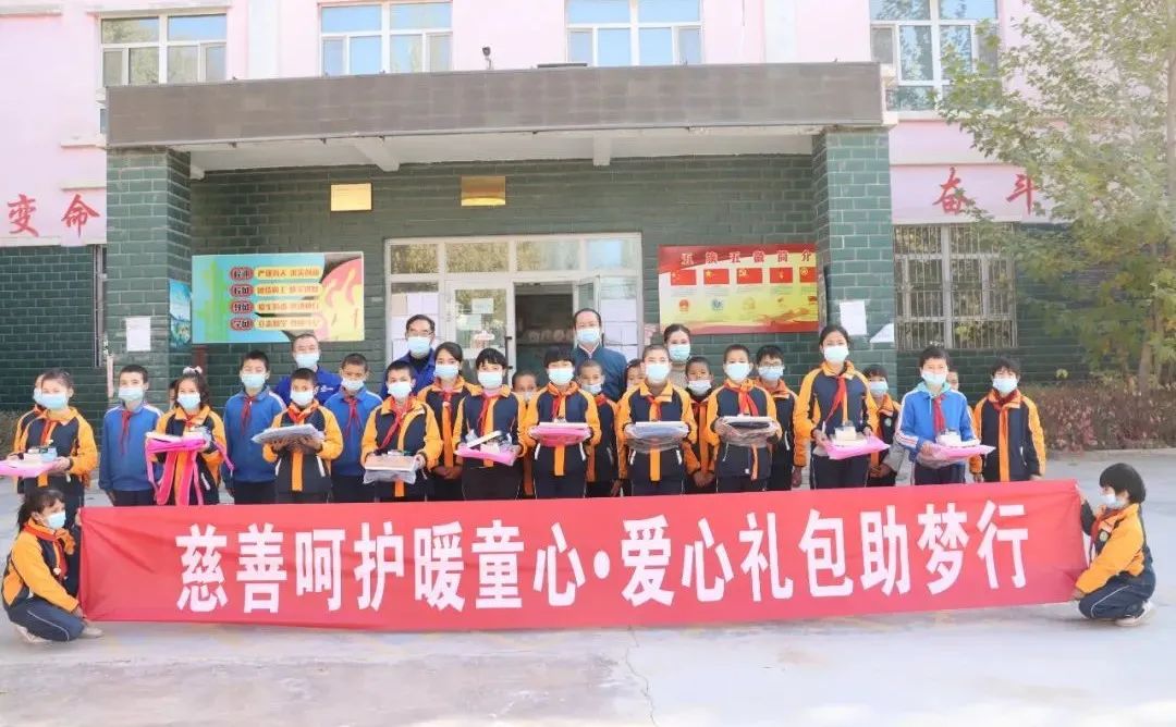 用爱守护 青青草影视在线,助梦前行,2021年11月8日和10日,库车天山水泥有限责任公司前往库车市林基路小学和库车市依西哈拉镇夏玛勒巴革村小学,为两个学校的困难学生带去了100套“爱心礼包”。