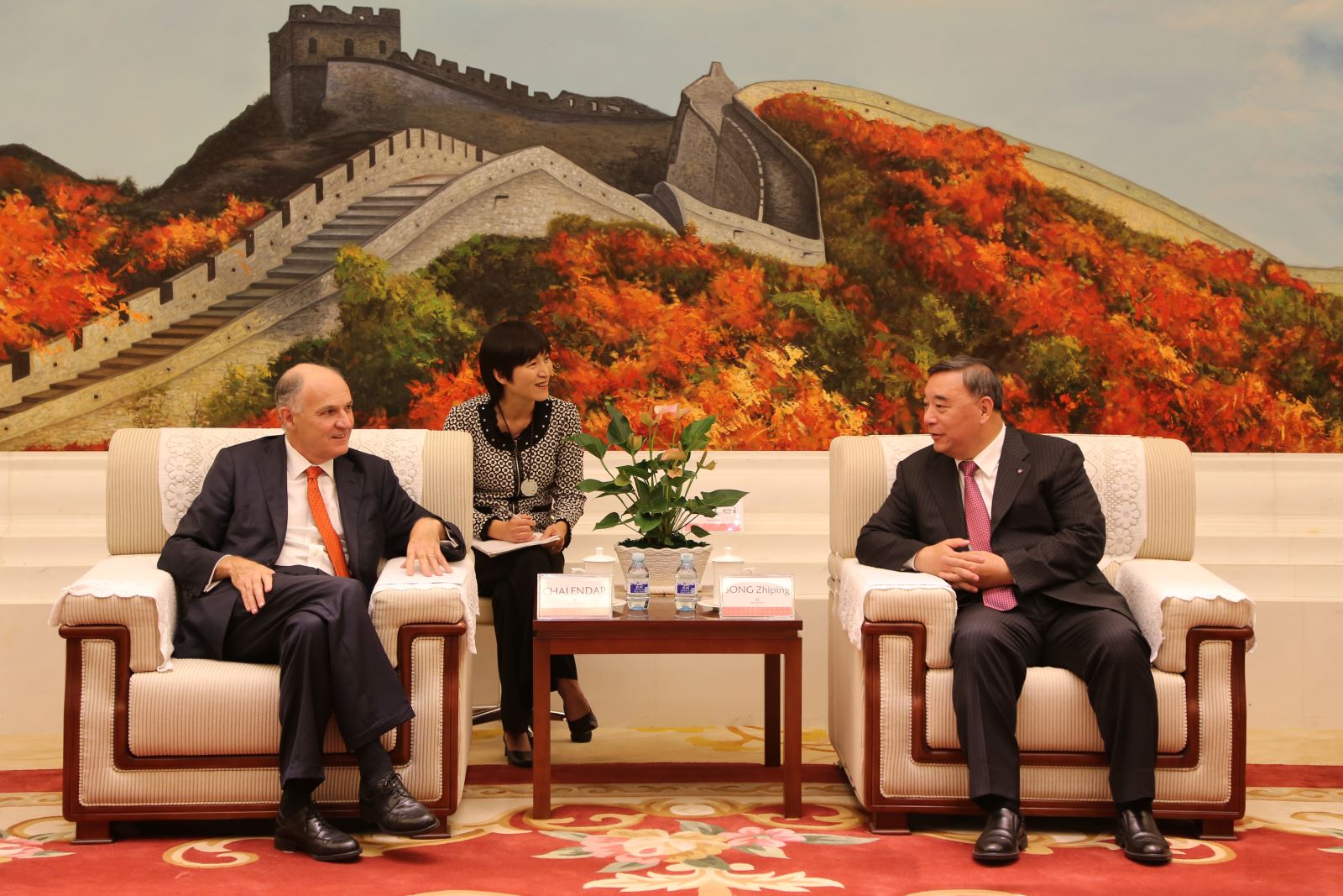 9月28日,中国建材集团董事长 青青草影视,党委书记宋志平在集团总部会见了圣戈班集团董事长兼首席执行官Pierre-André DE CHALENDAR一行。