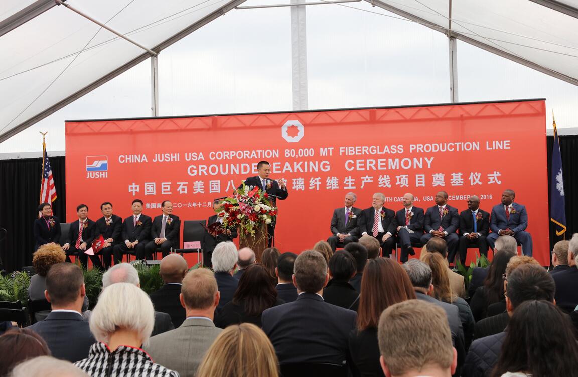 美国当地时间12月8日中午11时28分(北京时间12月9日0点28分),中国巨石投资美国3亿美元建设8万吨玻璃纤维生产线项目在美国南卡罗来纳州里奇兰县正式奠基,中国建材集团总经理曹江林,中国巨石总裁,巨石集团董事长兼首席执行官张毓强,中国驻美国使馆经济商务公使朱洪,美国南卡罗来纳州副州长亨利·麦克马斯特,商务厅厅长鲍比·希特,里奇兰县议会主席托里·拉什出席仪式并致辞,美国南卡罗来纳州商务厅全球业务发展部主任纳尔逊·林赛,里奇兰县经济发展委员会主席保罗·利文斯顿,哥伦比亚市市长史蒂夫·本杰明,中国巨石股东,监事唐兴华,中国巨石副总裁 青青草影视,巨石集团总裁杨国明,中国巨石副总裁曹国荣,项茹冰参加奠基仪式,杨国明主持奠基仪式。