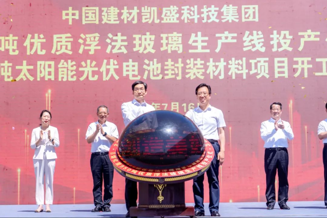 在耀华高新技术产业园区 青青草影视在线,周育先出席了中国建材凯盛科技950吨优质浮法玻璃生产线投产仪式暨1200吨太阳能光伏电池封装材料项目开工仪式,仪式上,周育先宣布新项目投产暨开工正式启动,并与王曦共同按下启动键。