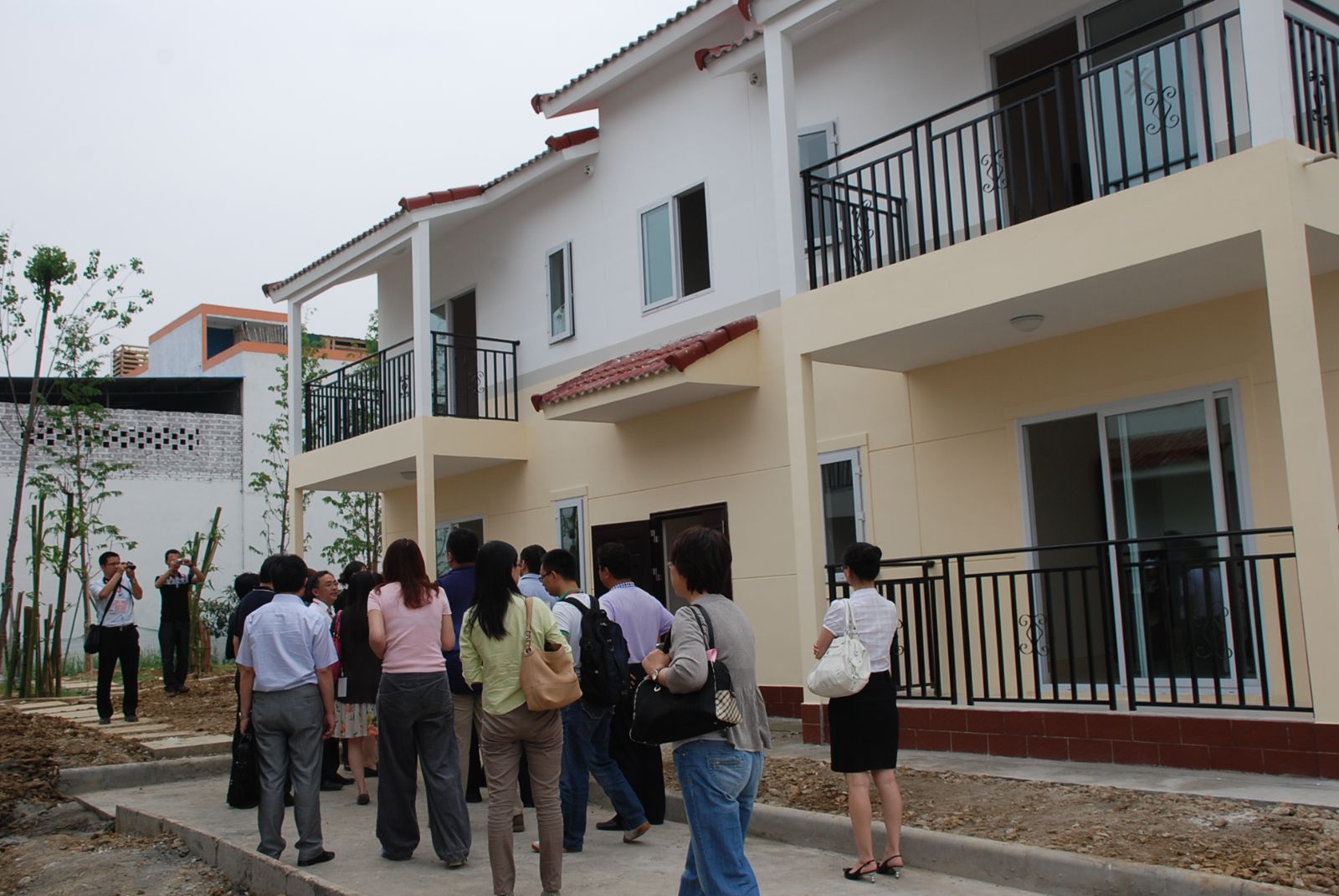 在完成了成都中光电的采访后,记者们又马不停蹄地来到了美丽的成都青白江区清泉镇花园村,参观了由北新建材集团与成都市青白江区政府合作开发的统筹城乡住宅项目,该项目是青白江新农村建设的示范项目。步入项目现场,一个花园式的新村庄呈现在众人面前:一栋栋红白相间的新型房屋均匀分布,村庄里绿树成荫,空气宜人……项目负责人在样板房里,详细向大家介绍了新型房屋的特点和功能。