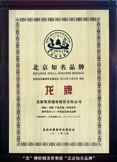 "青青草影视在线" 龙牌轻钢龙骨荣获“北京知名品牌”