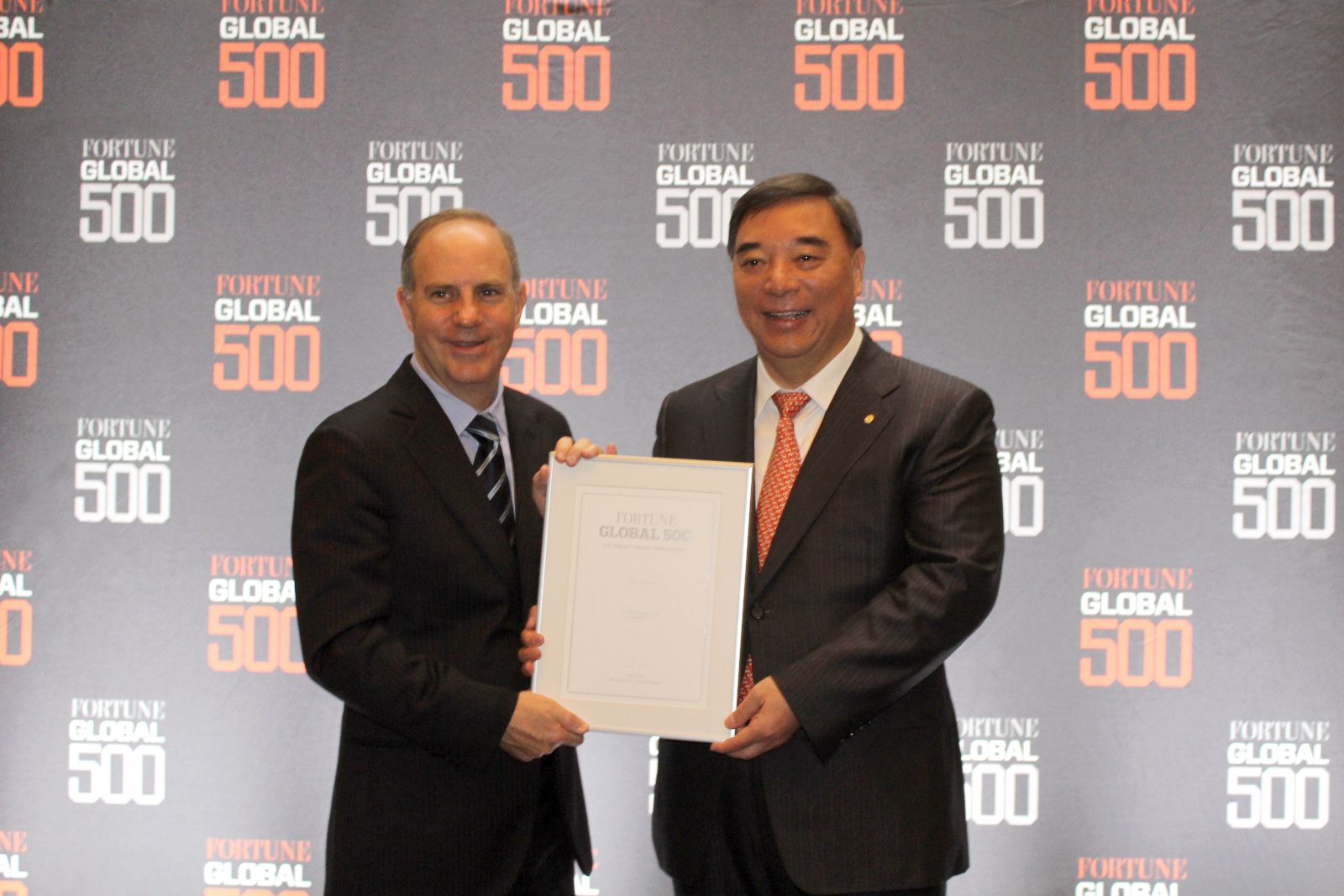 为表彰2012年全球500强中国上榜企业在世界市场中所取得的不凡商业成就,2012年9月19日晚,《财富》杂志在北京瑞吉酒店举行“2012年《财富》全球500强中国上榜企业庆祝晚宴”,宋志平董事长应邀出席,《财富》杂志总编苏安迪颁发上榜证书 青青草影视。
