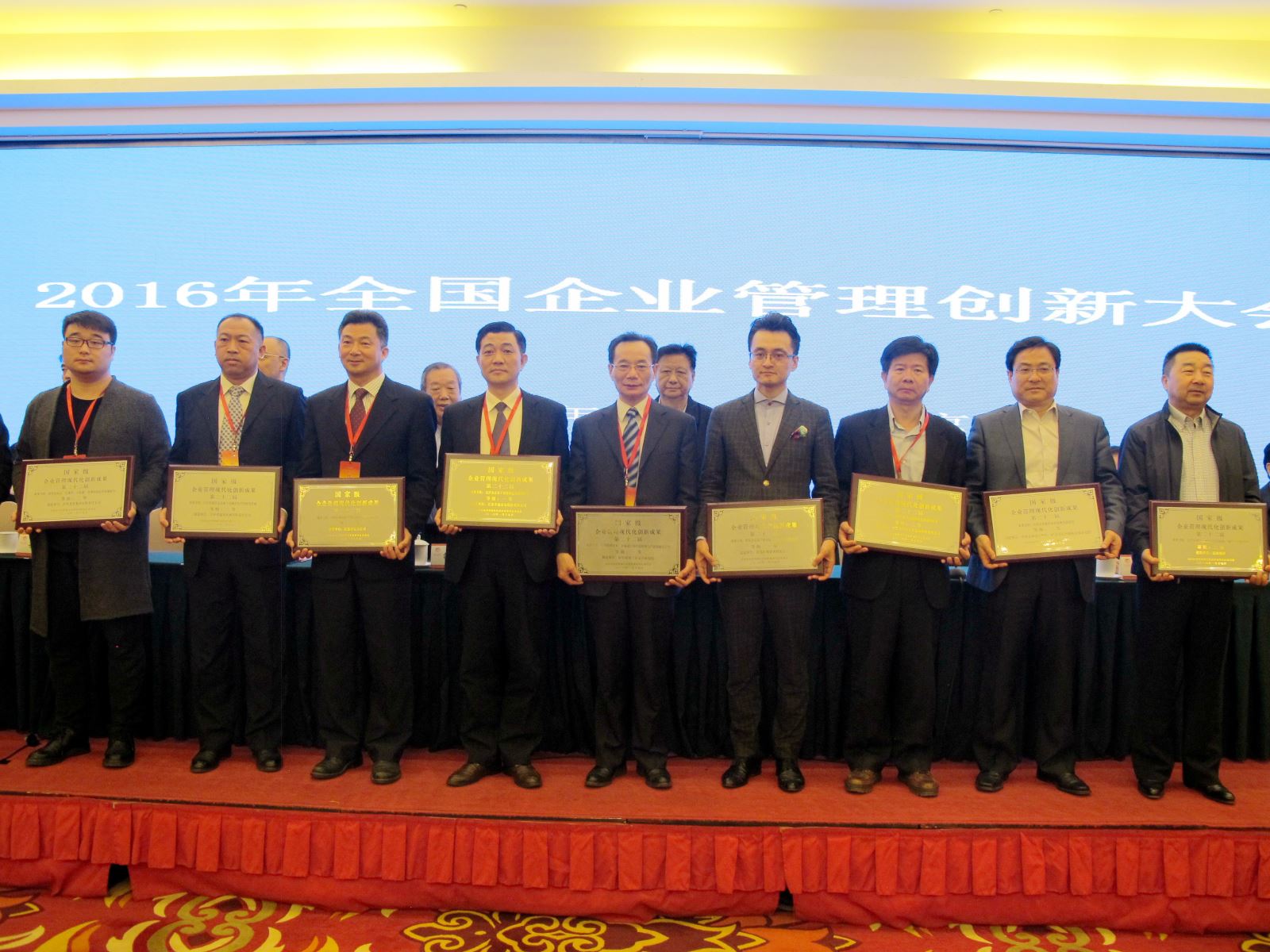 第十届全国政协副主席,中国企业联合会会长王忠禹,国家发改委副主任兼国家统计局局长宁吉喆,全国企业管理现代化创新成果审定委员会主任邵宁,国资委党委委员,秘书长阎晓峰等出席会议,来自全国各地国资委,工业和信息化主管部门 青青草影视在线,中小企业主管部门,企业联合会,全国性行业协会,中央企业和中国500强企业代表等300多人参加会议,蚌埠院党委副书记,纪委书记李志铭代表蚌埠院参加大会并上台领奖。