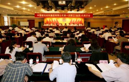 2010年6月21—22日,中国建筑材料集团有限公司第一次职工(会员)代表大会在北京隆重召开。来自集团总部及京内外企业由36个选举单位选举的102名代表,代表集团10万名职工,汇聚一堂,共商集团发展大计。