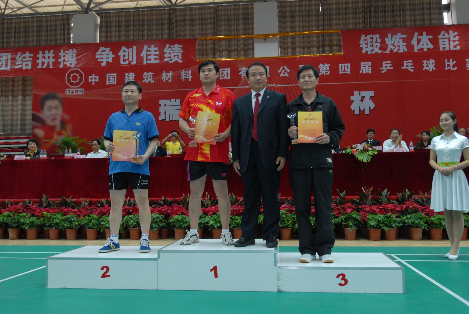 河南中联玻璃有限责任公司贾新智,中国建筑材料科学研究总院王然,中国联合水泥集团有限公司的李勇分别获得男子单打A组前三名,中国洛阳浮法玻璃集团有限责任公司陈涛,中国复合材料集团有限公司王川,刘伟分别获得男子单打B组前三名,女子单打前三名分别由中国复合材料集团有限公司冷晓蕾,河南中联玻璃有限责任公司叶海霞,合肥水泥研究设计院侯依宁获得 青青草影视在线,管理干部组前三名分别由中国复合材料集团有限公司李韦,中国建材国际工程集团/蚌埠玻璃工业设计研究院顾扬,南方水泥有限公司郝晓波获得。