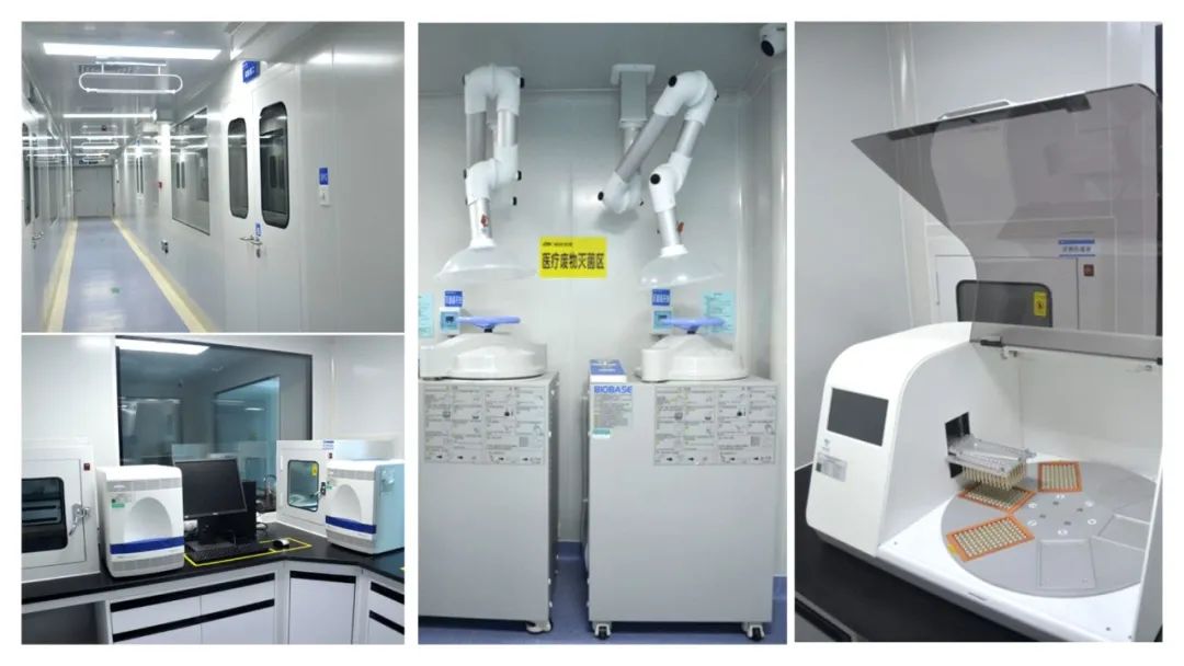 医学检验实验室拥有完整的质量管理体系和先进的检验设施设备,配备全自动核酸提取仪,实时荧光定量PCR,高压灭菌锅 青青草视频,生物安全柜等设备设施,主要开展新型冠状病毒肺炎(CoronaVirus Disease 2019,COVID-19)核酸检测,具备日单管6000人份次的检测能力,拥有专业检测队伍,为开展高质量检测提供了人才和技术支持。