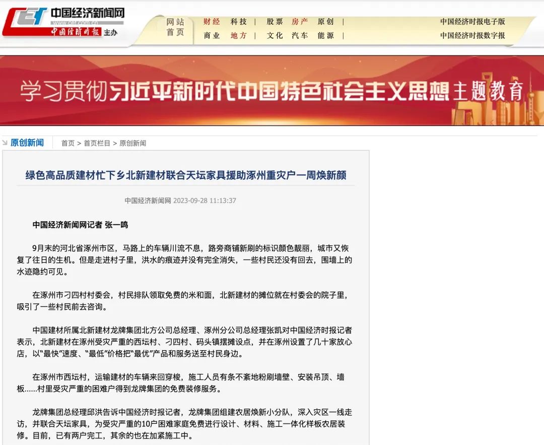 人民政协网从“创新服务模式 援助涿州重灾户一周焕新颜”角度介绍了北新建材践行央企责任,深入县乡灾区一线,积极助力灾区重建,把优质建材和服务送到村民身边,推动“四个转变服务升级”的创新实践 青青草影视在线。