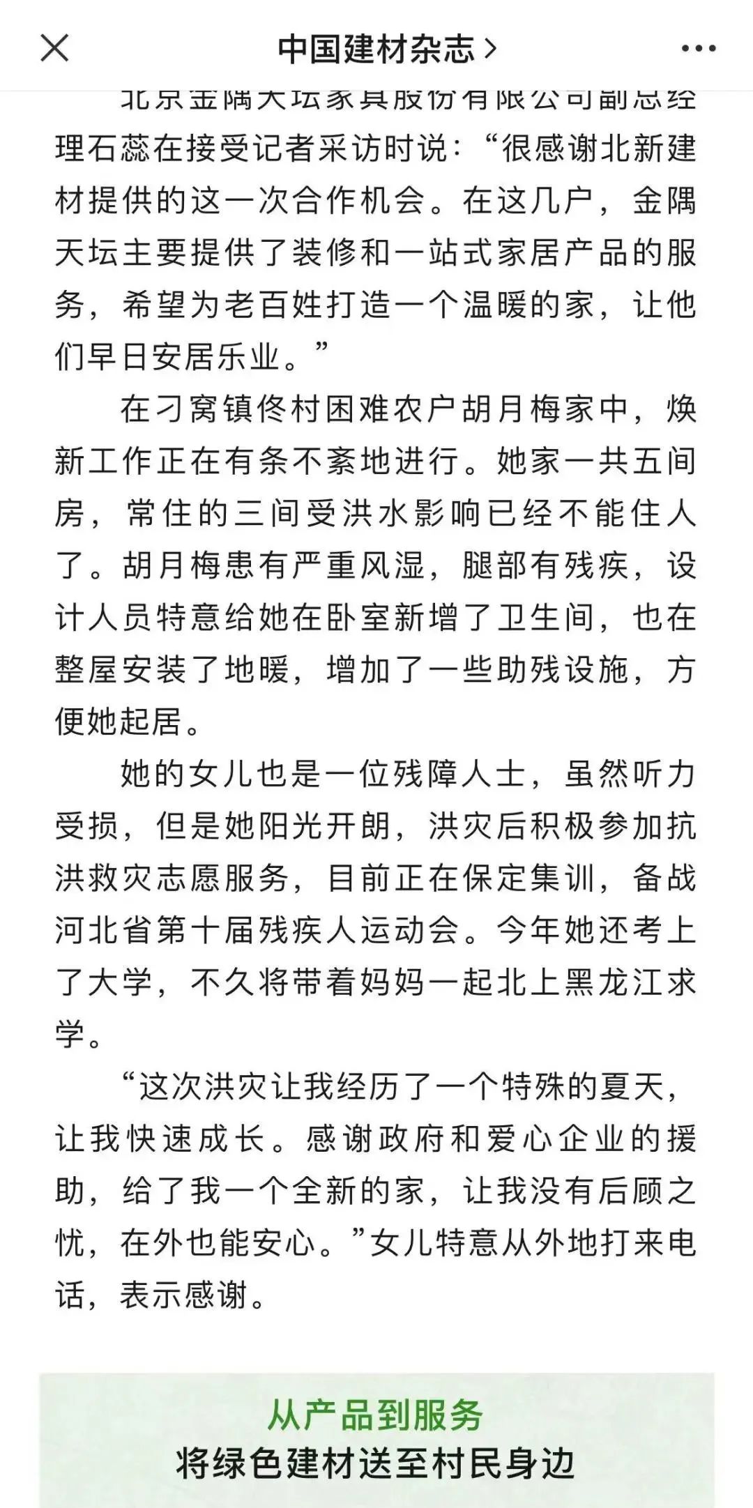 《中国建材》杂志从危房到新居,从产品到服务,从工装到家装三个方面,介绍北新建材积极响应国家号召推进以县城为重要载体的城镇化建设 青青草影视免费观看,创新四个转变服务模式,促进家居消费,以绿色科技和高品质建材产品为当地村民生活带来可喜变化。