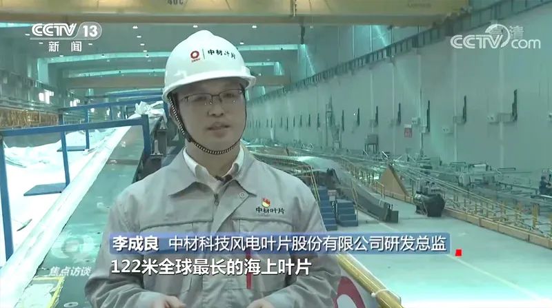 中材科技风电叶片股份有限公司研发总监李成良说:“现在正在生产的是122米,全球最长的海上叶片 青青草视频,这个叶片采用了最先进的高性能翼型和碳纤维拉挤技术研发而成,”。