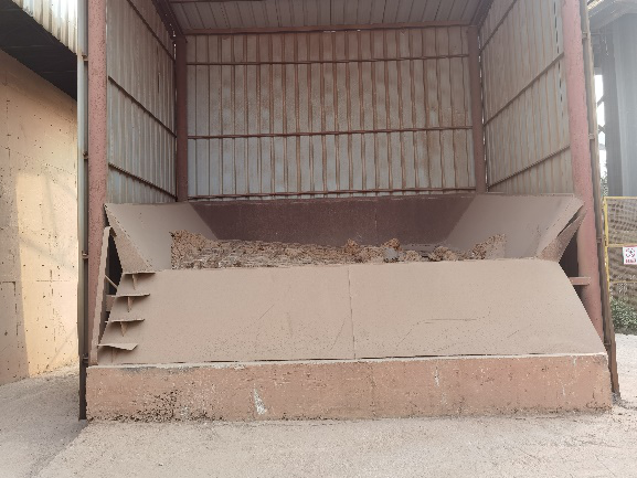 以前砂岩进厂后堆放在堆棚中,为增加存储量,需要装载机及时铲装堆高,在使用时,又需要装载机铲装至装卸口,工作量非常大 青青草影视,后来利用替换下的皮带机传动部分,只采购部分角铁,托辊,员工自己制作皮带机架,从出辅材均化堆场皮带机头部增加一条砂岩转运皮带,节约设备投资30万元,实现了砂岩入厂时直接卸车进辅材堆场进行均化储存,用自制取料机代替铲车进料,既提高了砂岩配料的稳定性,又降低了50%的装载机工作量,年节约柴油约40吨,节约费用约30万元。