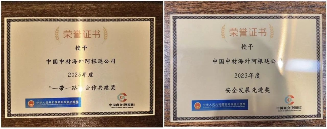 此外,在中国驻阿根廷大使馆的领导下,中国商会组织在阿的各中资企业召开了“2023年中资企业年会”,对杰出中资企业进行了表彰,中材海外阿根廷子公司荣获“2023年度安全发展先进奖”和“2023年度‘一带一路’合作共建奖” 青青草影视在线。