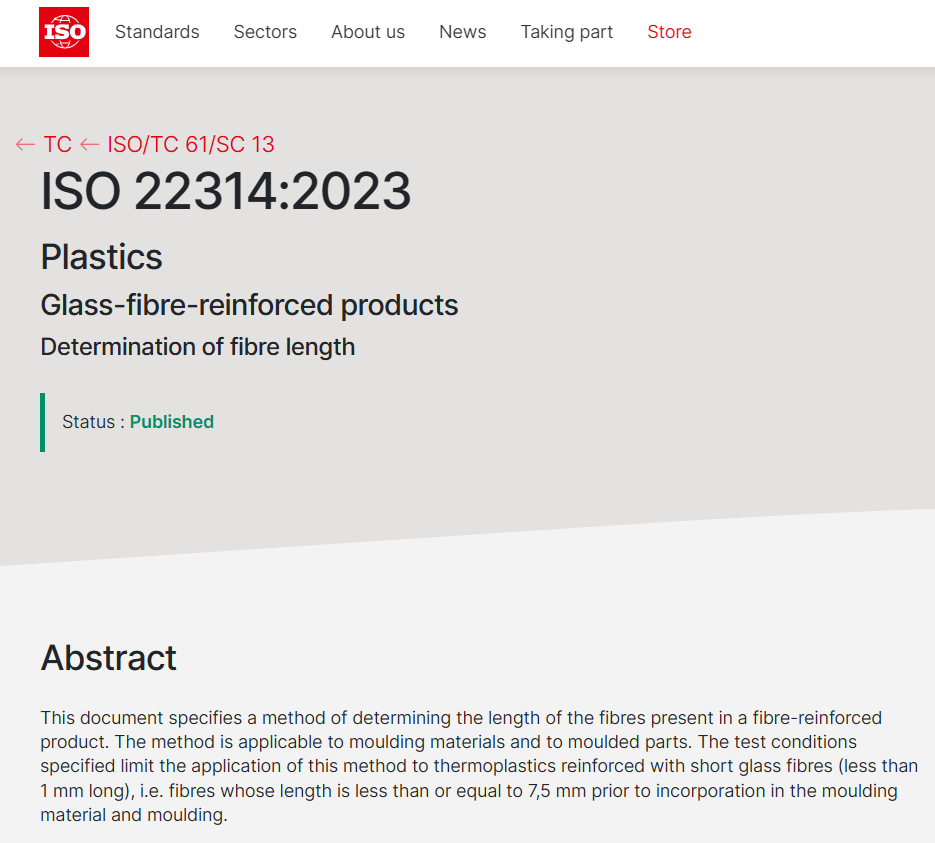 近日 青青草视频,北玻院首个主导修订的国际标准ISO22314:2023《塑料 玻璃纤维增强制品 纤维长度的测定》(Plastics—Glass-fibre-reinforced products—Determination of fibre length)正式发布,该标准规定了一种测定玻璃纤维增强热塑性复合材料制品中纤维长度的方法,此次修订历时15个月,各阶段标准草案投票均获得10余个ISO投票权成员国100%的赞成票,该项标准的成功发布,标志着公司迈上国际标准制修订工作的新台阶,提升了中国在国际标准化领域的话语权。