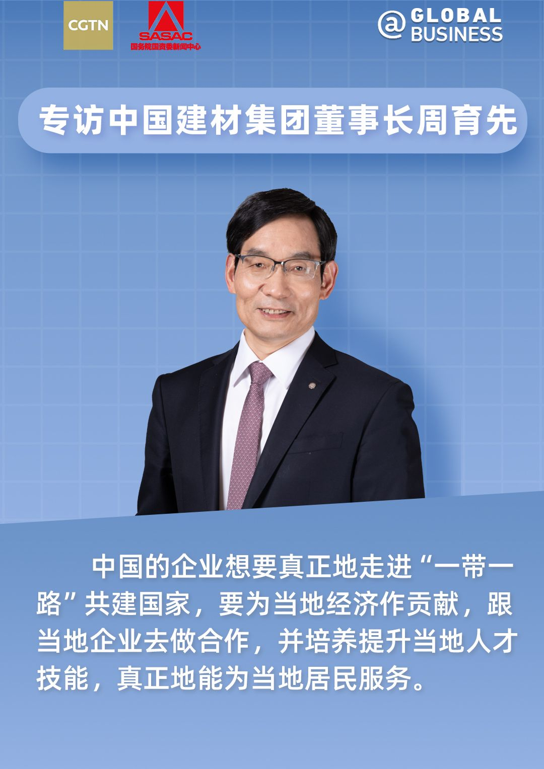 丝路新国企 | 周育先接受CGTN专访:共话中国建材“一带一路”海外融合发展之道